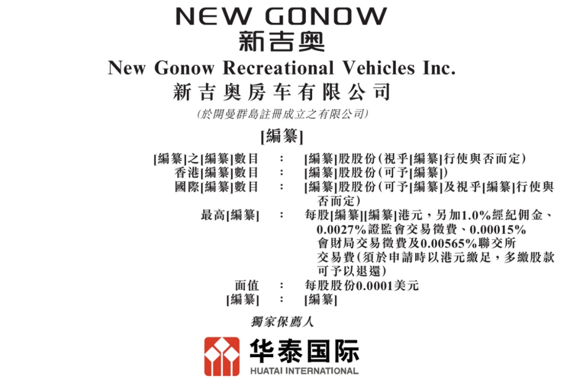 智通财经APP获悉,据港交所11月29日披露,新吉奥房车有限公司(简称:新吉奥)向港交所主板提交上市申请书,华泰国际为其独家保荐人。