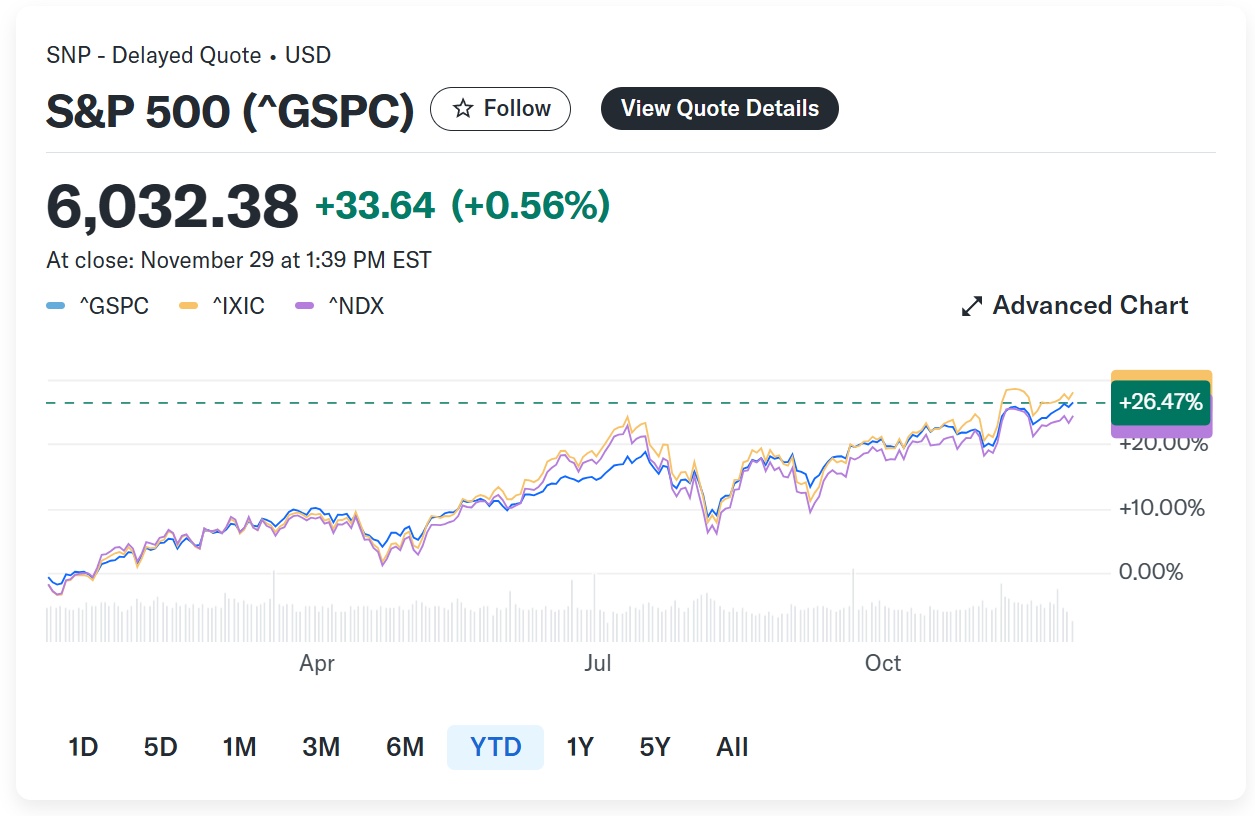 今年,标准普尔500指数创下了50多个历史收盘高点,道琼斯工业平均指数和纳斯达克100指数也紧随其后。