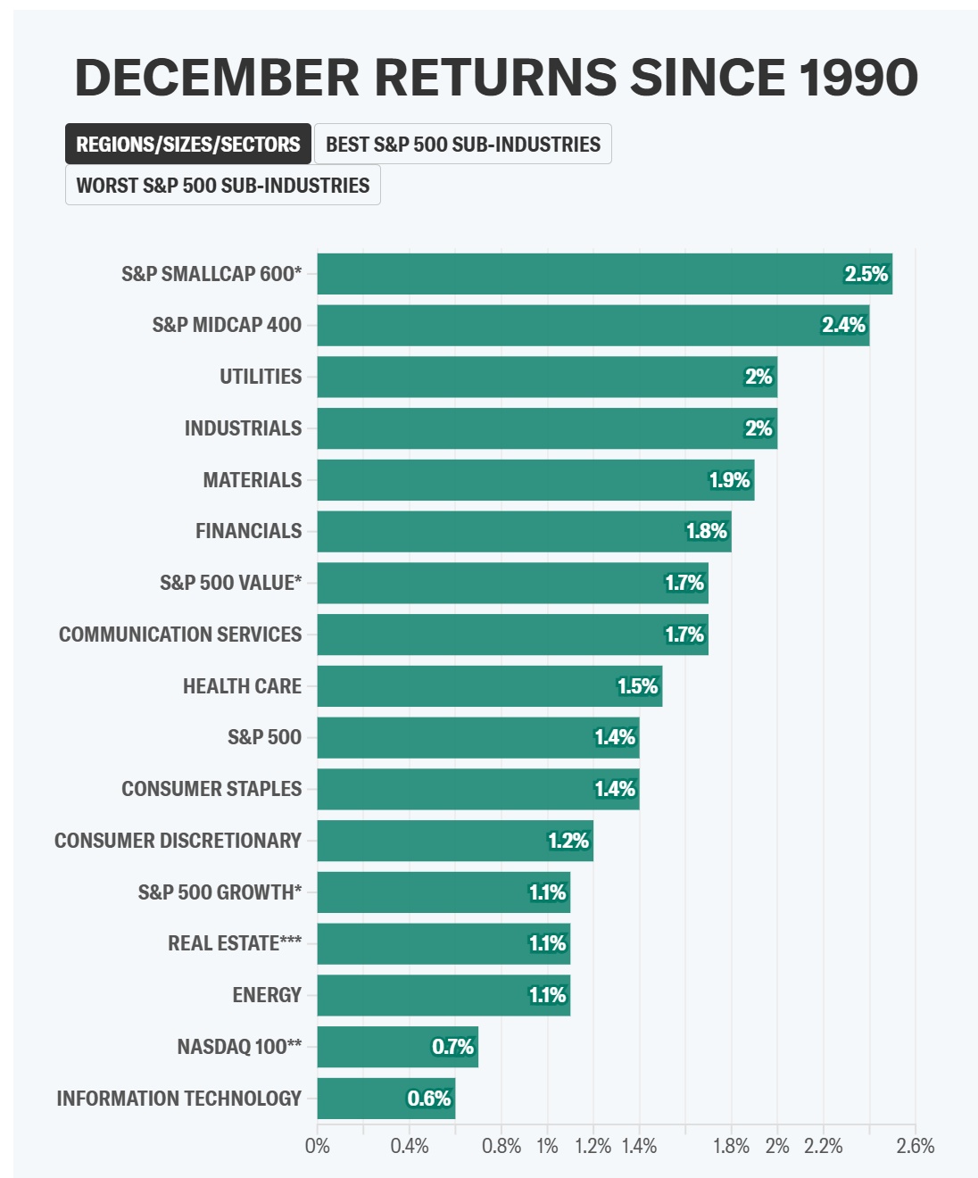 展望未来,“圣诞反弹”(即股市在一年的最后5个交易日加上新年的头两个交易日走高)的可能性可能会进一步提振回报率。