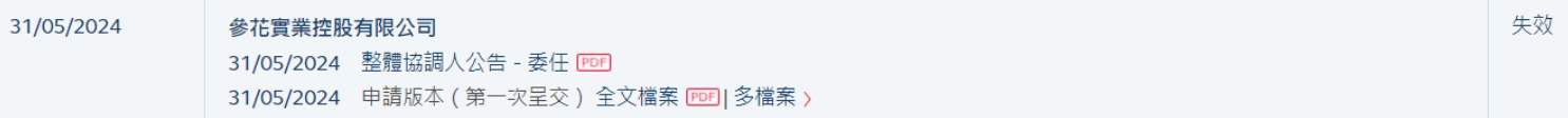 智通财经APP获悉,参花实业控股有限公司于2024年5月31日所递交的港股招股书满6个月,于12月1日失效,递表时中泰国际为其独家保荐人。