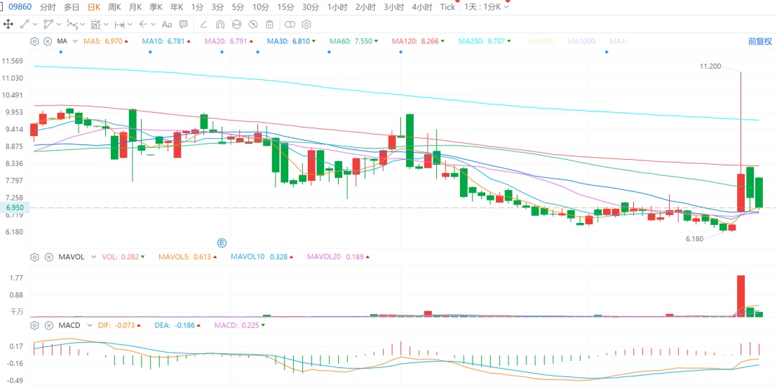 今年9月中旬后,恒指大盘迎来一波上涨行情,艾迪康股价虽然在9月9日至11日出现“三连跌”,但依旧在9月13日止跌开始了跟随大盘的脚步。但与多数个数在10月7日或8日启动回调期不同,艾迪康的此轮行情持续到10月3日便匆匆结束,接下来就是长达近2个月的横盘震荡期,期间公司股价在11月22日盘中跌至上市新低6.18港元,期间日最低成交量也跌至20万股以下。