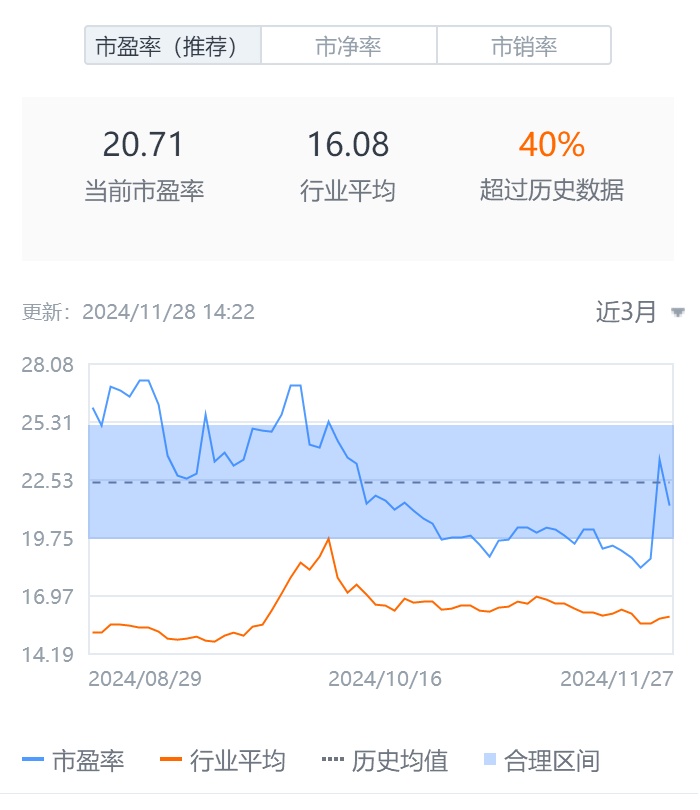 相比之下,得益于11月26日的这波涨势,艾迪康估值得到大幅回归,当前PE估值为20.71倍,高于行业平均的16.08倍,且超过历史估值数据40%,处于公司合理估值区间的中上位置。但当前公司价位及估值水平对于倾向更大赔率空间的大资金而言,此时显然不是一个脱离成本区间的好时机。