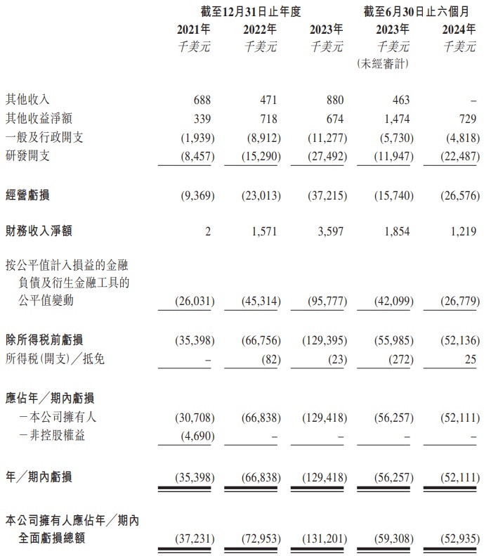 财务方面,于2021年度、2022年度、2023年度及2024年截至6月30日止六个月,拨康视云研发开支分别约为845.7万美元、1529万美元、2749.2万美元、2248.7万美元;同期,公司年内亏损分别约为3539.8万美元、6683.8万美元、1.29亿美元、5211.1万美元。