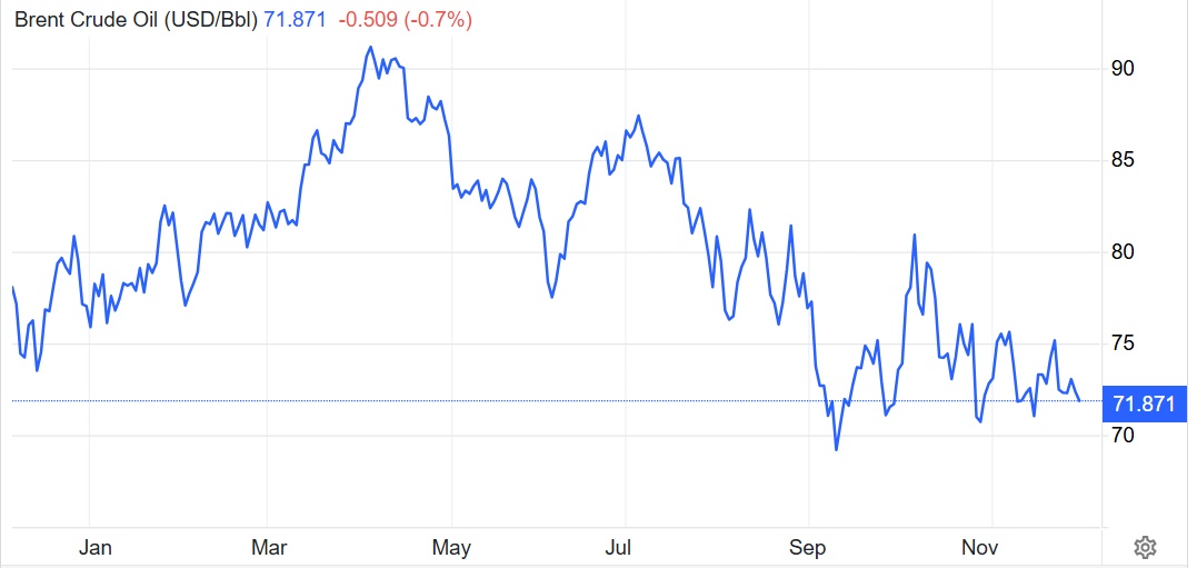 国际能源署(IEA)的预测则更加悲观,IEA 在11月的月度报告中表示,由于能源转型导致中国等亚洲需求国的石油需求持续低迷,全球石油市场明年将面临超过100万桶/日的过剩,从而缓冲中东及其他地区动荡对油价的影响。该机构预测,尽管需求增长放缓,但美国、巴西、加拿大和圭亚那等生产国的供应量将在今年和明年增长150万桶/日。因此,即使欧佩克+放弃恢复产量的计划,明年全球供应量仍将超过需求量100多万桶/日。