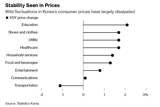 智通财经APP获悉,韩国消费者价格指数(CPI)涨幅低于预期,并连续第三个月低于韩国央行设定的目标,显示出物价企稳的迹象。