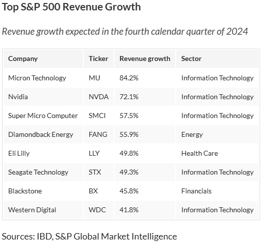 FactSet说,分析师们认为,标普500指数成分股公司作为一个整体,第四季度营收将增长4.7%。标普500指数成份股公司中,预计有八家公司的季度收入增幅将达到或超过40%。其中包括一些不太明显的人工智能公司,比如硬盘制造商希捷科技(STX.US)和西部数据(WDC.US)。