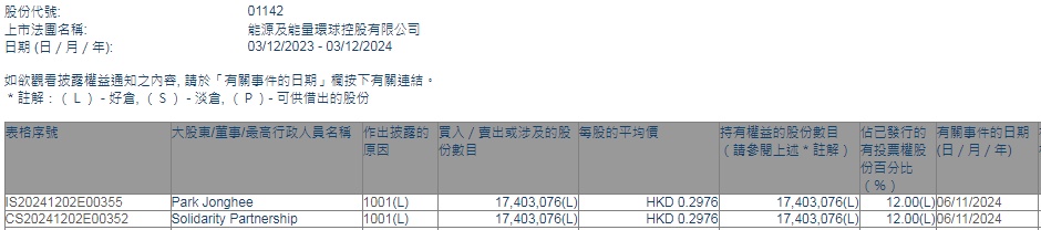 Partnership增持能源及能量环球(01142)1740.3076万股,每股作价0.2976港元,总金额约为517.92万港元。增持后最新持股数目约为1740.31万股,持股比例为12%。