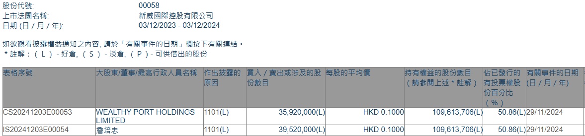 智通财经APP获悉,香港联交所最新资料显示,11月29日,詹培忠增持新威国际(00058)3592万股,平均每股作价为0.10港元,总金额为359.2万港元。增持后最新持股数目约为1.10亿股,持股比例为50.86%。