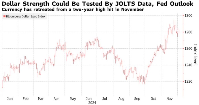 这些相互矛盾的趋势为美元交易创造了一个棘手的背景,许多投资者都在为未来几天的波动做准备。Allspring Global Investments的基金经理Lauren van Biljon认为,如果美联储降息并暗示将进一步放宽政策,美元多头仓位可能会受到考验。她说:“市场目前大举增持美元,部分在感恩节前被减持,但可能只是杯水车薪。在年底前可能会有平仓的压力,并在2025年以更平衡的水平开始。”