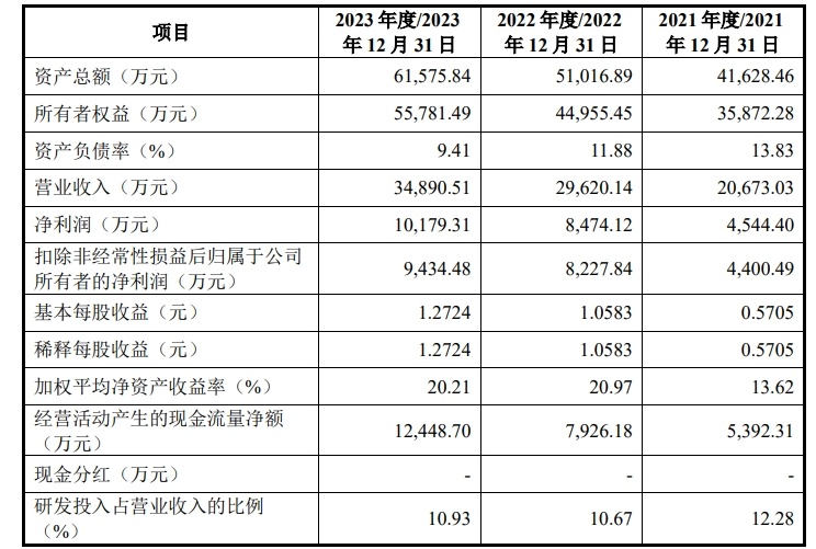 财务方面,于2021年度、2022年度、2023年度,海谱润斯实现营业收入分别约为2.07亿元、2.96亿元、3.49亿元人民币;同期,该公司实现净利润分别为4544.4万元、8474.12万元、1.02亿元人民币。