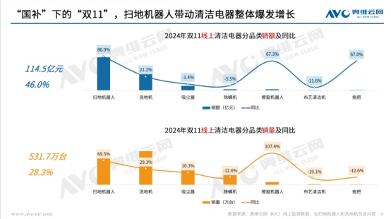 奥维云网(AVC)11月底最新数据也显示,今年“双十一”促销期(W41-W46),线上清洁电器销额达到114.5亿元,同比增长46%;销量537.1万台,同比增长28.3%。在“国补”政策刺激下,今年的“双十一”成为近两年少有的市场爆发期,为行业注入了新的活力。