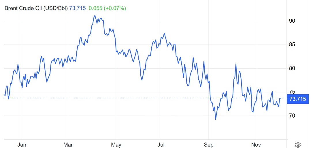 尽管如此,在需求持续疲软的趋势之下,石油“供应过剩”或者“产能过剩”这一担忧情绪持续笼罩着整个原油期货交易市场。11月早些时候,在布伦特原油期货价格持续暴跌的背景下,欧佩克+如市场预期的那样推迟了从12月开始提高石油产量的计划。
