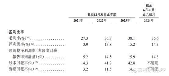 再看毛利率及净利率,2021年至2023年及截止2024年6月30日,大众口腔毛利率分别为27.3%、36.3%、38.1%及36.6%;对应的净利率分别为3.9%、13.8%、15.2%及14.3%;基本上大众口腔的毛利率及净利率都呈现上升趋势。不过毛利率及净利率的大幅提升基本上再2022年,其后基本上处于相对稳定的状态,对于2022年毛利率的大幅提升,招股书显示,主要为处置8家口腔医院机构后成本减少,且议价能力不断增强,采购成本以及租金下降所致。