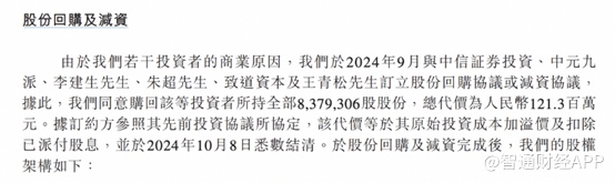 值得注意的是,由于部分投资者的商业原因,大众口腔于2024年10月8日购回中元九派、朱超、中信证券投资、致道资本、李建生及王青松持有的全部股份,总代价为1.21亿元。