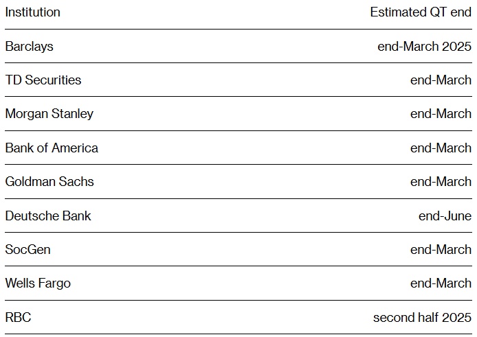 尽管如此,所有这些不确定性将使美联储衡量QT短期利率风险的能力更具挑战性。加拿大皇家银行资本市场策略师预计,美联储将在2025年下半年叫停QT,并指出政策制定者的言论表明,缩表还有很长一段路要走。