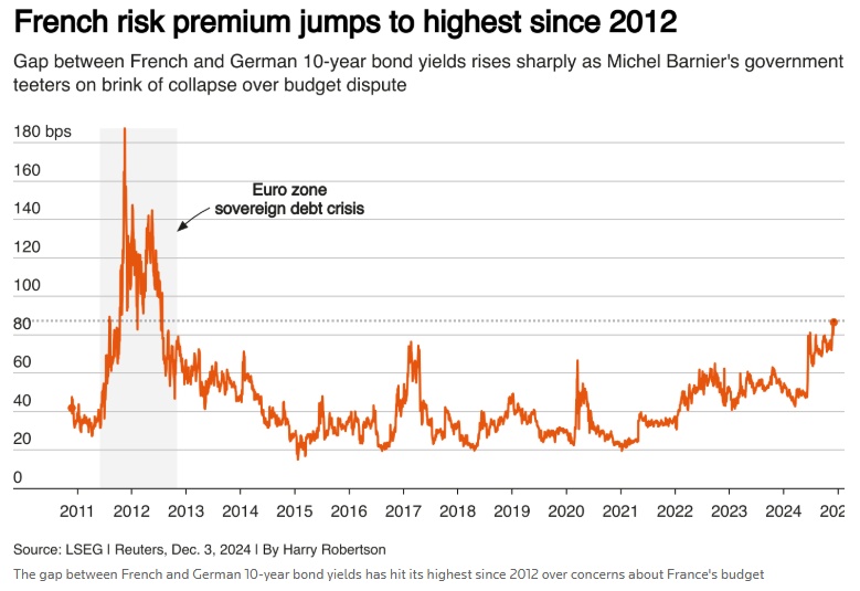 即使市场目前看来得到了控制,但巴尼耶政府垮台也会降低法国解决紧迫财政问题的可能性。