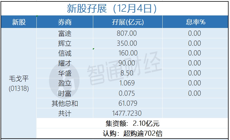 新股孖展统计 | 12月4日
