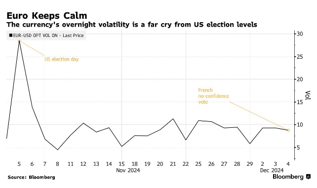 交易商正在权衡欧元未来的走向,此前围绕明年预算的争议导致极右翼领导人勒庞和左翼联盟周三投票反对总理巴尼耶的政府,这标志着自1962年以来,法国政府首次因不信任投票而被推翻。