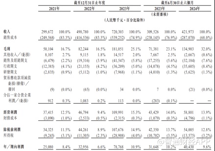 业绩方面,2021年、2022年、2023年、2024年截至6月30日止六个月,新吉奥收入分别约为3.00亿元、4.99亿元、7.2亿元、4.22亿元;同期净利润分别约为0.25亿元、0.33亿元、0.79亿元、0.4亿元。