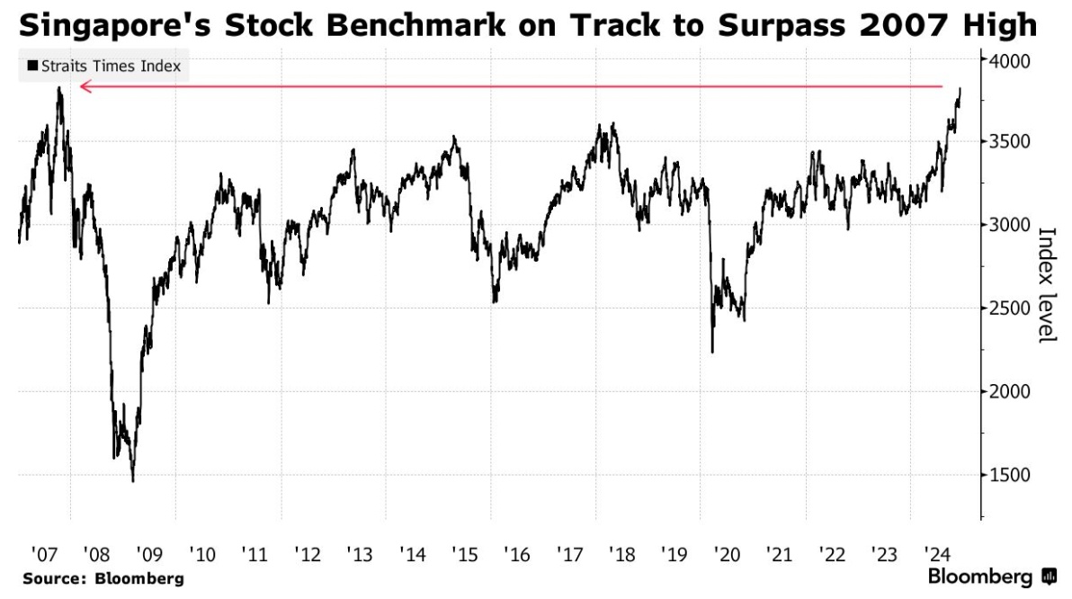 海峡时报指数今年迄今已上涨 18%,成为东南亚表现最好的股市。