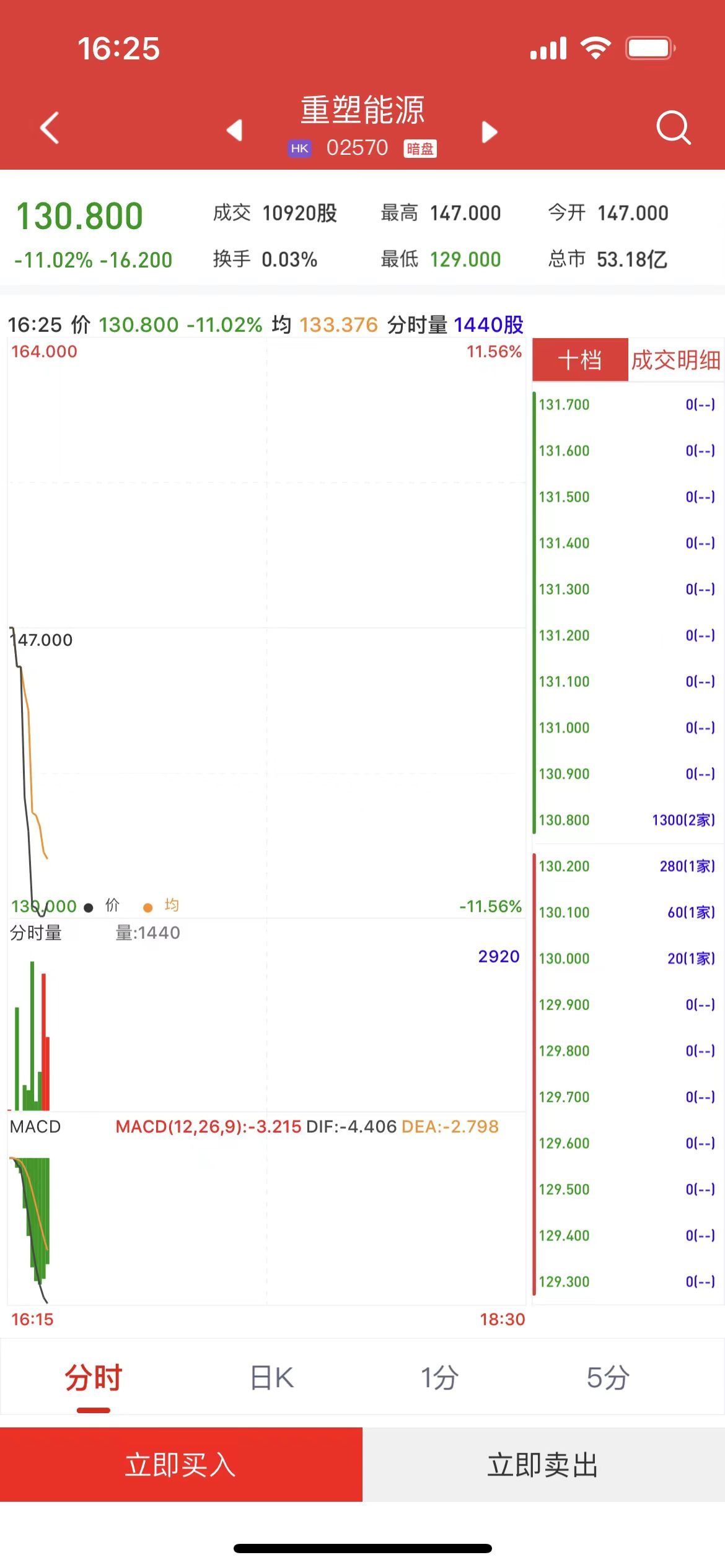 智通财经APP获悉,重塑能源(02570)将于12月6日(周五)在香港挂牌。截至发稿,利弗莫尔证券暗盘交易显示报价130.80港元,较招股价147港元下跌11.02%,每手20股,不计手续费,每手亏324港元。