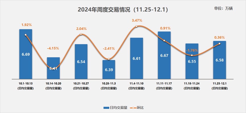 综合来看,本周二手车市场在政策推动与年底旺季的双重利好下,继续展现了稳健增长的良好态势。日均交易量稳定在较高水平,不仅较前一周微增,更较10月底有显著提升,显示出市场需求的持续旺盛。政策的强劲推动,特别是汽车置换更新补贴的广泛申请,为市场注入了强劲动力,使得二手车市场迎来前所未有的发展机遇。
