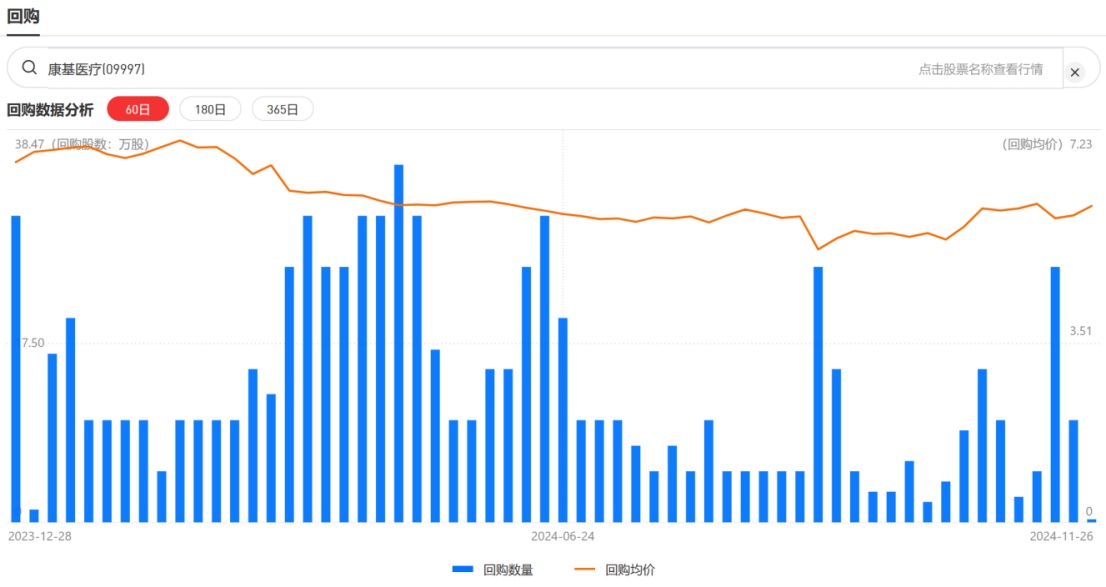 康基医疗今年股票回购的关键节点共有5个,分别在2023年12月22日、5月30日、9月11日、10月16日和11月22日。其中,去年12月起的回购持续17天,截至1月18日结束;5月30日起的回购持续29天,截至7月18日结束;9月11日起的回购持续9天,截至9月25日结束;而10月16日和11月22日起的回购持续时间则分别仅有4天和3天。