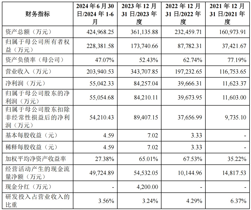 财务方面,于2021年度、2022年度、2023年度及2024年1-6月,天有为实现营业收入约为11.68亿元、19.72亿元、34.37亿元、20.39亿元人民币;同期,公司实现净利润分别为约1.16亿元、3.97亿元、8.43亿元、5.50亿元人民币。
