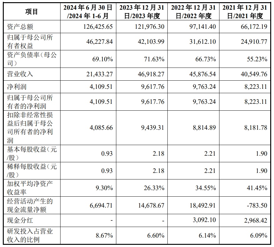 财务方面,于2021年度、2022年度及2023年度,公司实现营业收入分别约为4.05亿元、4.59亿元、4.69亿元。公司净利润分别约为8223.11万元、9763.24万元、9617.76万元人民币。