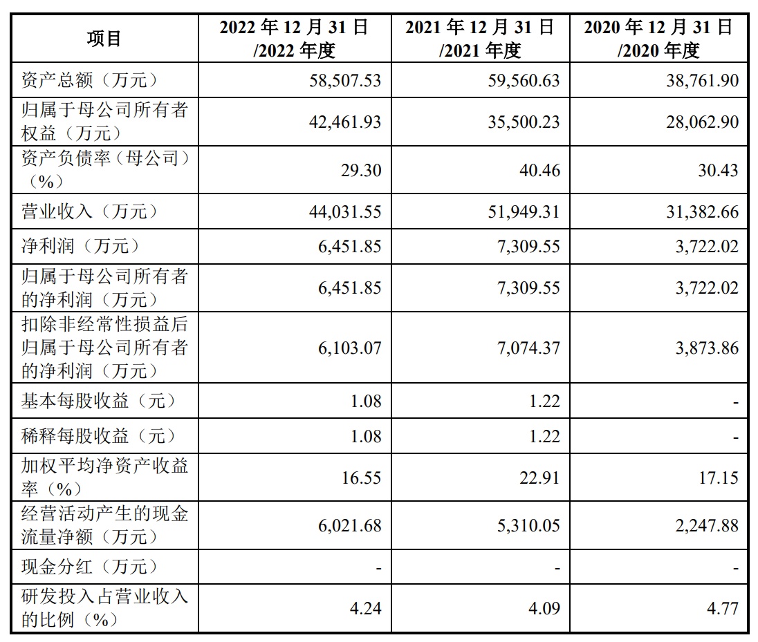 财务方面,于2020年、2021年、2022年,科峰股份营业收入分别为3.14亿元、5.19亿元、4.40亿元人民币,同期,公司净利润分别约为3722.02万元、7309.55万元、6451.85万元人民币。