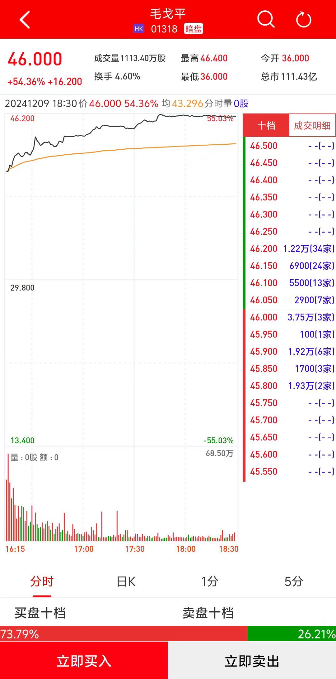 智通财经APP获悉,毛戈平(01318)将于12月10日(周二)在香港挂牌。截至收盘,利弗莫尔证券暗盘交易显示报价46港元,较招股价29.8港元上涨54.36%,每手100股,不计手续费,每手赚1620港元。