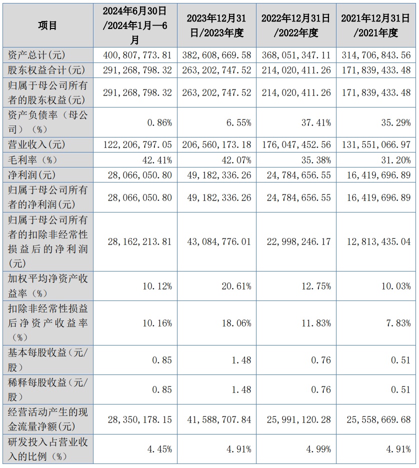 财务方面,于2021年度、2022年度及2023年度,公司实现营业收入分别约为1.32亿元、1.76亿元、2.07亿元。公司净利润分别约为1641.97万元、2478.47万元、4918.23万元人民币。