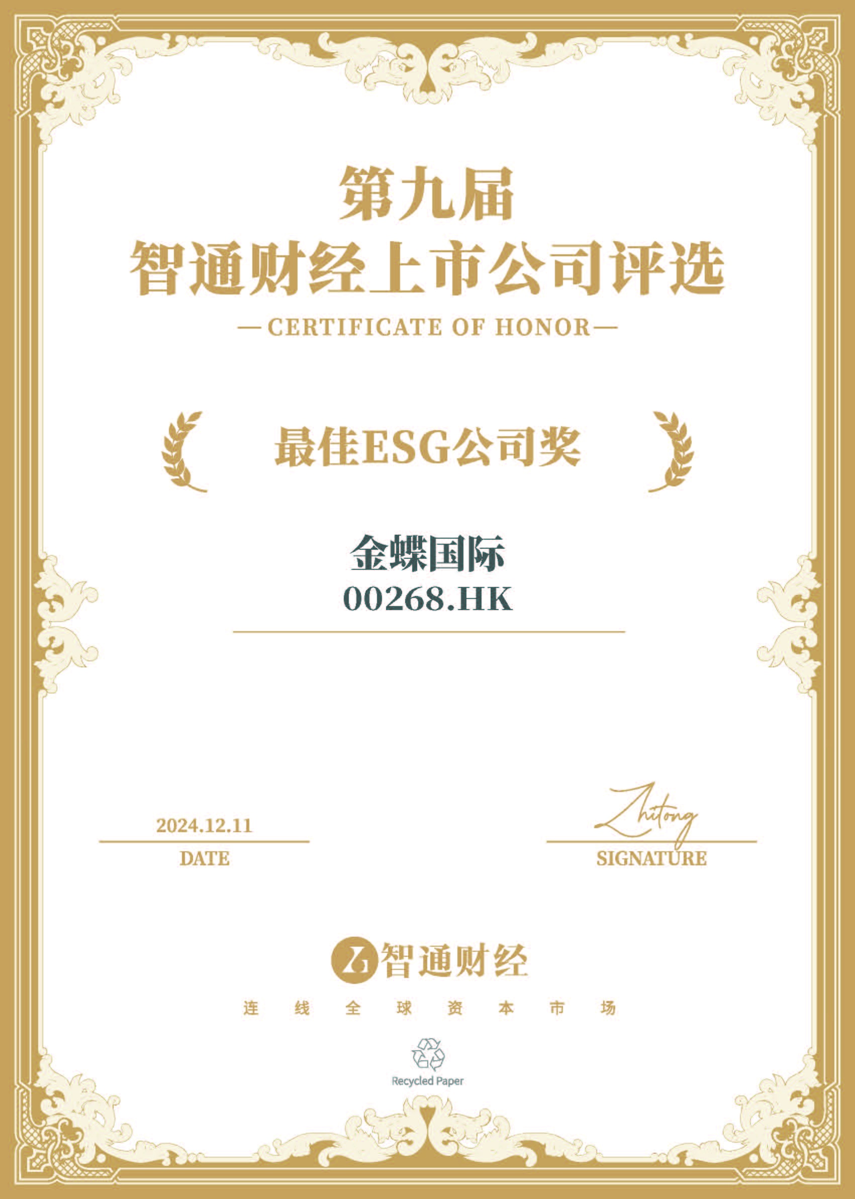 2024年12月11日,金蝶国际(00268)在备受瞩目的“第九届智通财经资本市场年会暨上市公司颁奖典礼”上荣获“最佳ESG公司奖”。这一盛会由国内领先的港美股资讯平台智通财经与中资海外私募基金一站式服务平台新智基金网联合主办,并由财经公关综合服务提供商冬日暖阳Donova独家承办,同时得到了专业财经路演直播平台“大路演”提供的路演支持。