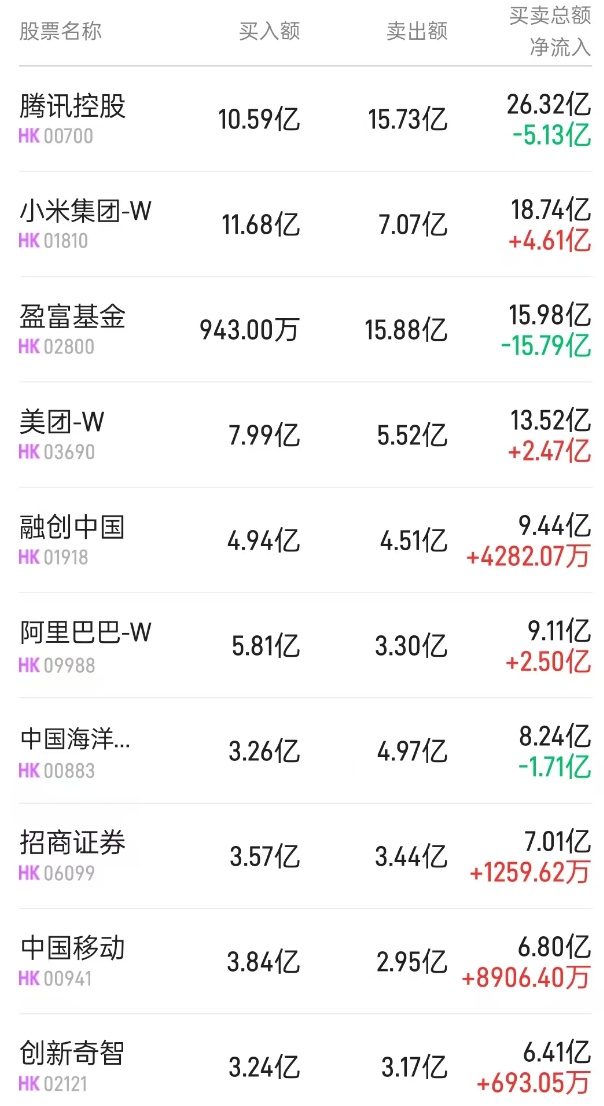 中国移动(00941)获净买入1.49亿港元。消息面上,中原证券指出,运营商具备高股息的配置价值,年中和年末两次现金分红,分红比例持续提升。央行引导商业银行向上市公司和主要股东提供贷款,用于回购和增持上市公司股票,央行新政策强化了对高股息公司市值管理的支持。运营商传统业务经营稳健,全面参与算力网络建设,引领 ICT 产业发展,在新质生产力的发展过程中起到关键作用,处于从数据资源化向资产化迈进的关键期,探索数据要素价值释放路径,具备科技成长属性,价值有望持续重估。