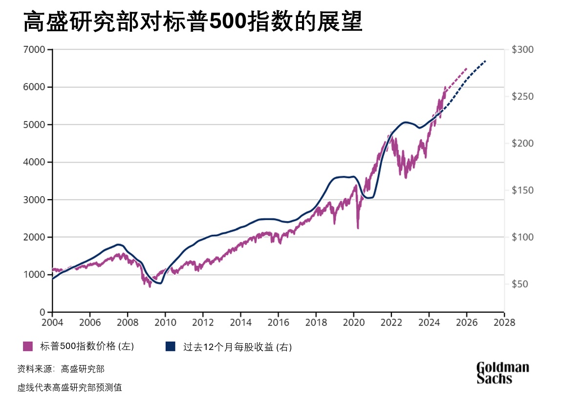 智通财经APP获悉,高盛研究部在最近的2025年全球股市展望研究报告中指出,由于经济稳健扩张和盈利稳定增长,预计标准普尔500 指数将连续第三年上涨。首席美国股票策略师大卫·考斯汀 (David Kostin) 写道,预计到2025年底,标普500指数将升至6,500点,包括股息在内的总回报率可达10%,预计2025年盈利将增长11%,2026年将增长 7%。