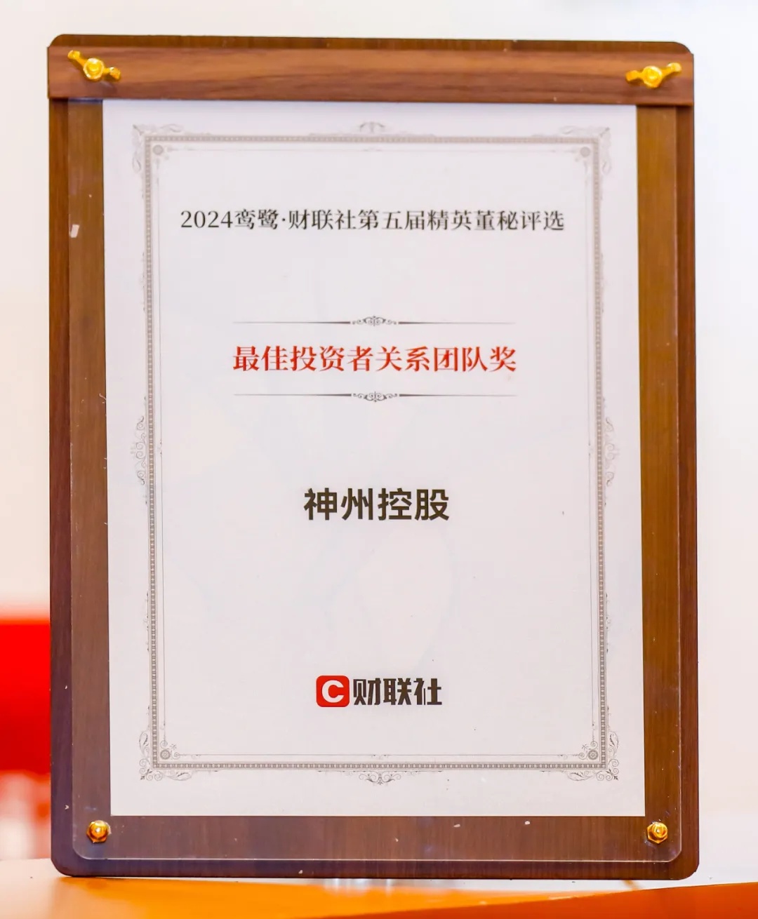 在第五届财联社企业ESG论坛暨“致远奖”颁奖典礼上,神州控股荣获2024年度财联社致远奖“ESG先锋奖”,并于12月12日荣获2024鸾鹭·财联社第五届精英董秘评选“最佳投资者关系团队奖”。