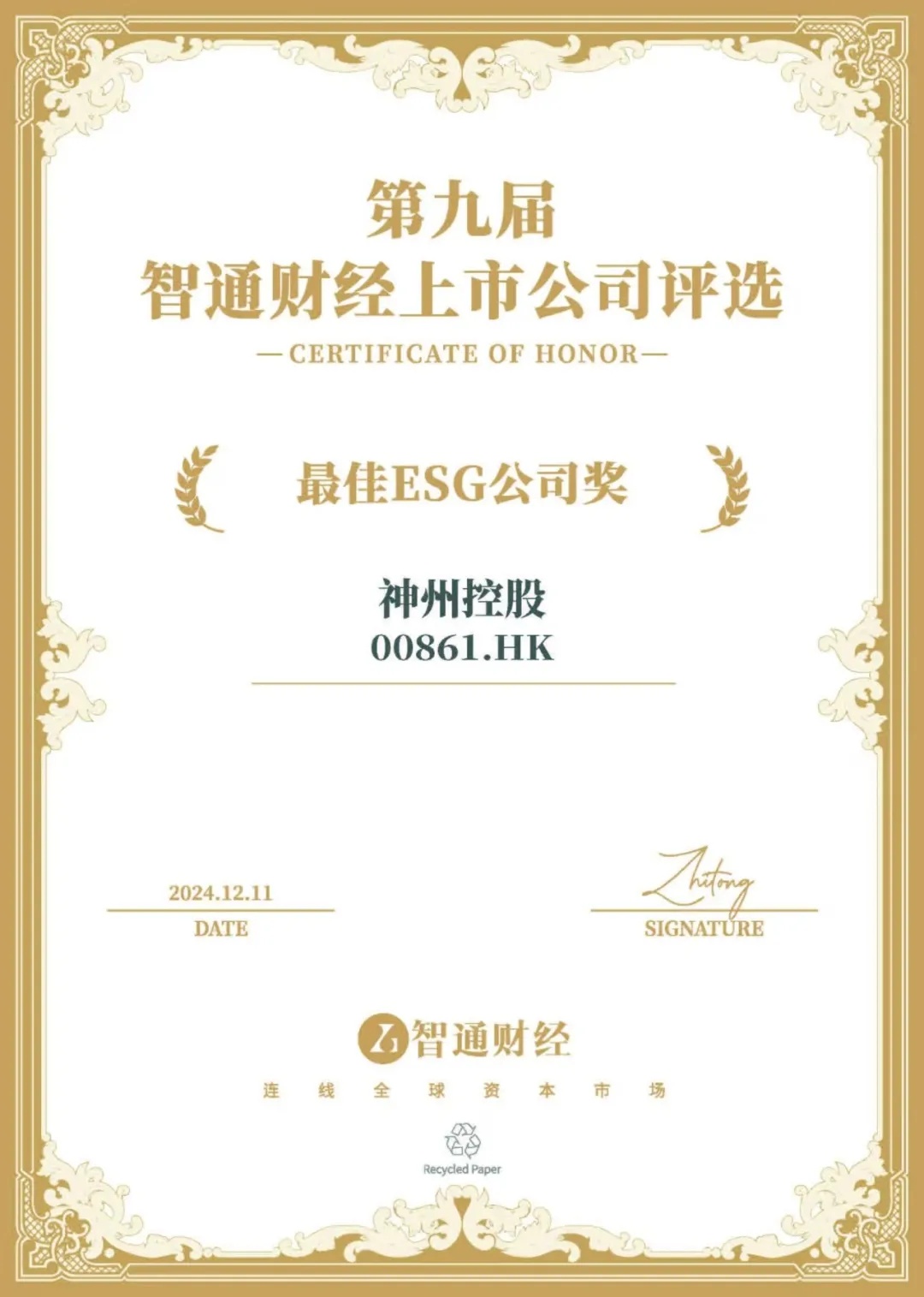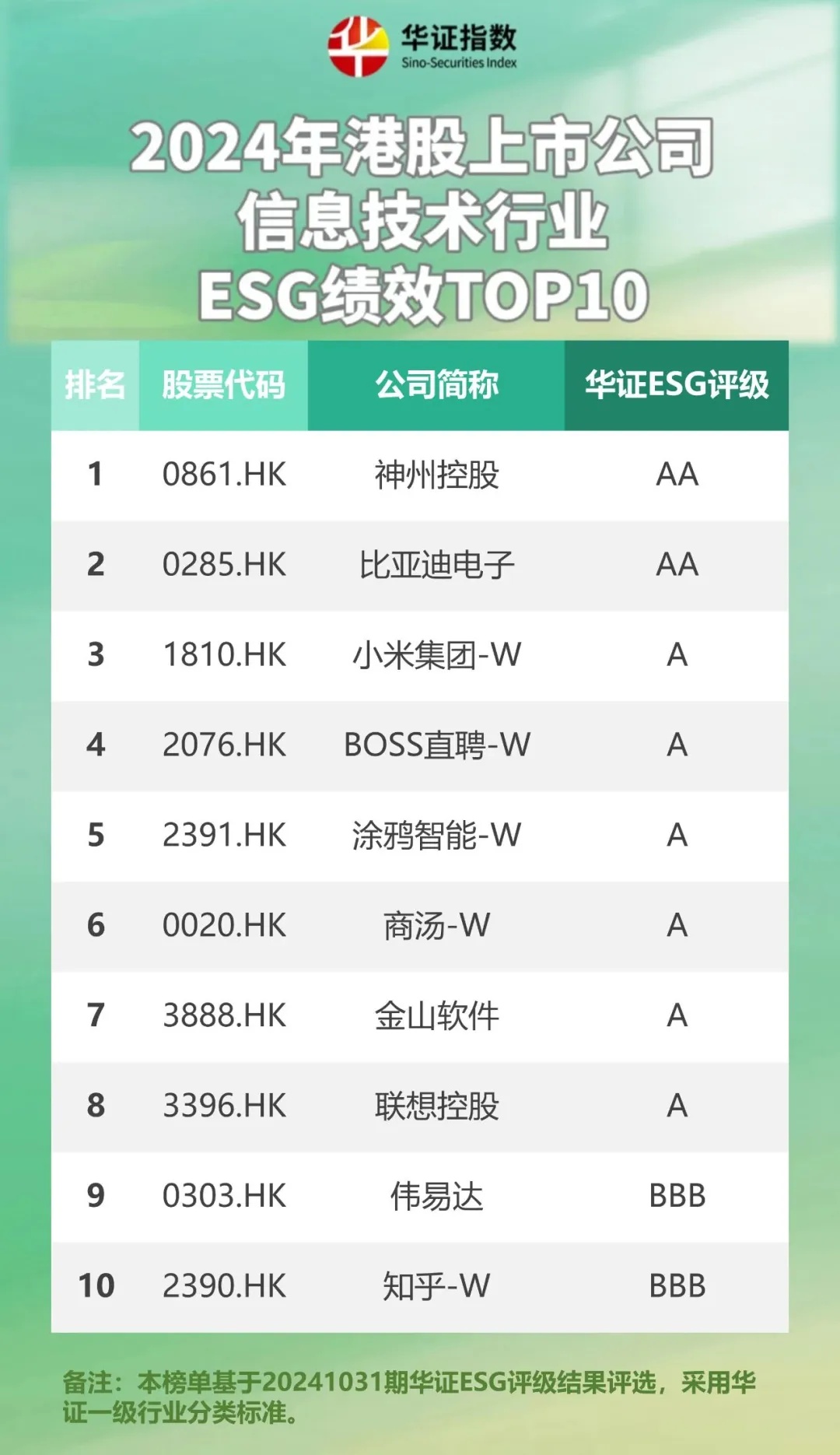 同时,在华证指数近日发布的“2024年港股上市公司ESG卓越表现Top100”榜单,神州控股上榜信息技术行业ESG绩效榜第1位。