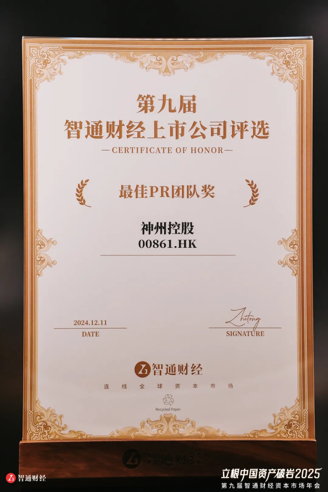 在备受瞩目的“第九届智通财经资本市场年会暨上市公司颁奖典礼”上,神州控股荣获“最佳ESG公司奖”、“最佳PR团队奖”。
