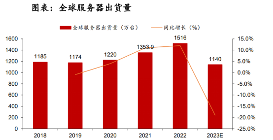 放在全球视角看联想ISG业务,宏观和AI双重影响全球服务期需求。2018年到2022年期间,服务云化、边缘服务器等驱动下,全球对服务器的需求持续增长。根据IDC数据显示,2018年全球服务器出货量约为 1185 万台,2022年全球服务器出货量达 1516万台。根据赛迪顾问公众号,2023年,受全球主要云计算巨头服务器采购量下降以及算力结构调整等影响,通用服务器的出货量明显放缓。