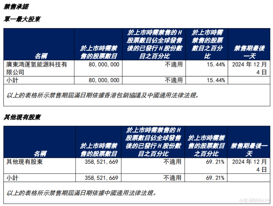 消息面上,国鸿氢能上市届满一年,12月5日迎来大笔解禁。据国鸿氢能此前发布公告显示,公司单一最大股东广东鸿运氢能源科技有限公司及其他现有股东的受禁售承诺规限股份的截止日期为12月4日。据相关统计,国鸿氢能此次迎来47名股东解禁,累计解禁股数超3.58亿股。