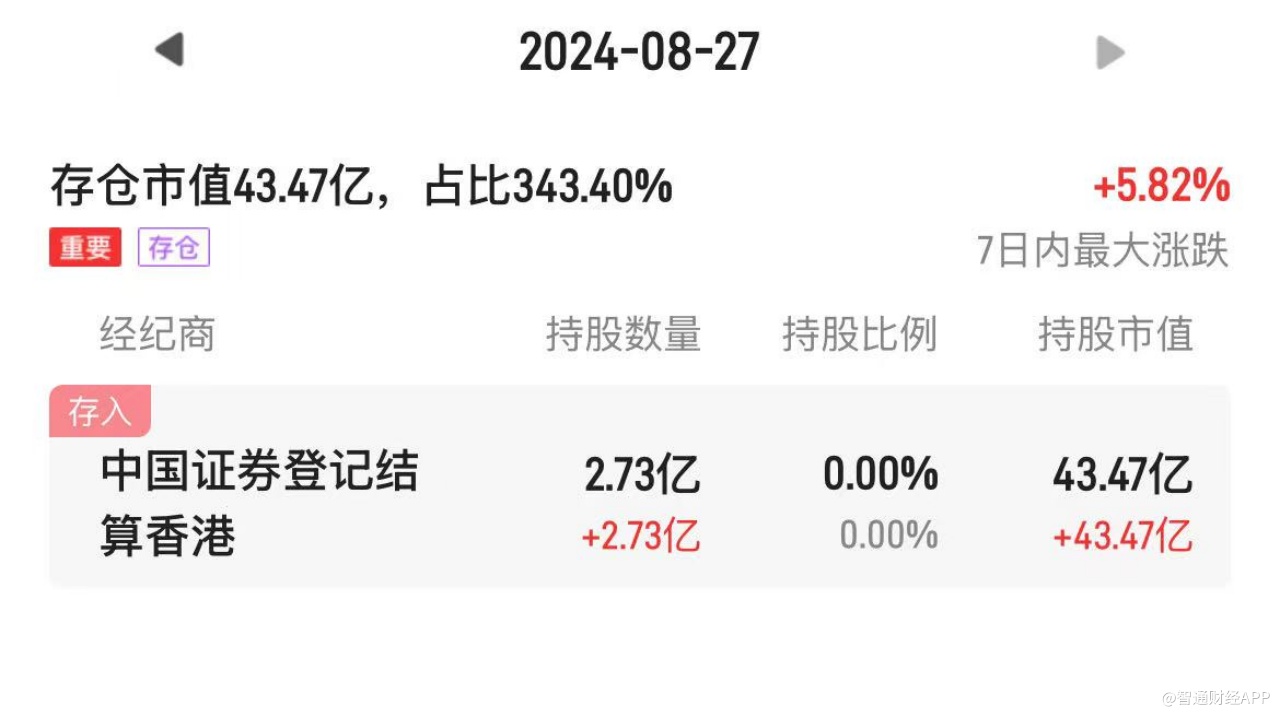 8月27日,国鸿氢能发生存仓异动,存入经纪商正是中国证券登记结算香港,数量为2.73亿股,市值43.47亿港元。所谓存仓是发行人或上市公司股东,把自身的股票由原来的纸质股票转换成电子股票的行为,意味着公司可自由流通股份增加。对应概念解释,国鸿氢能股东的存仓动作意味着什么无需赘述。
