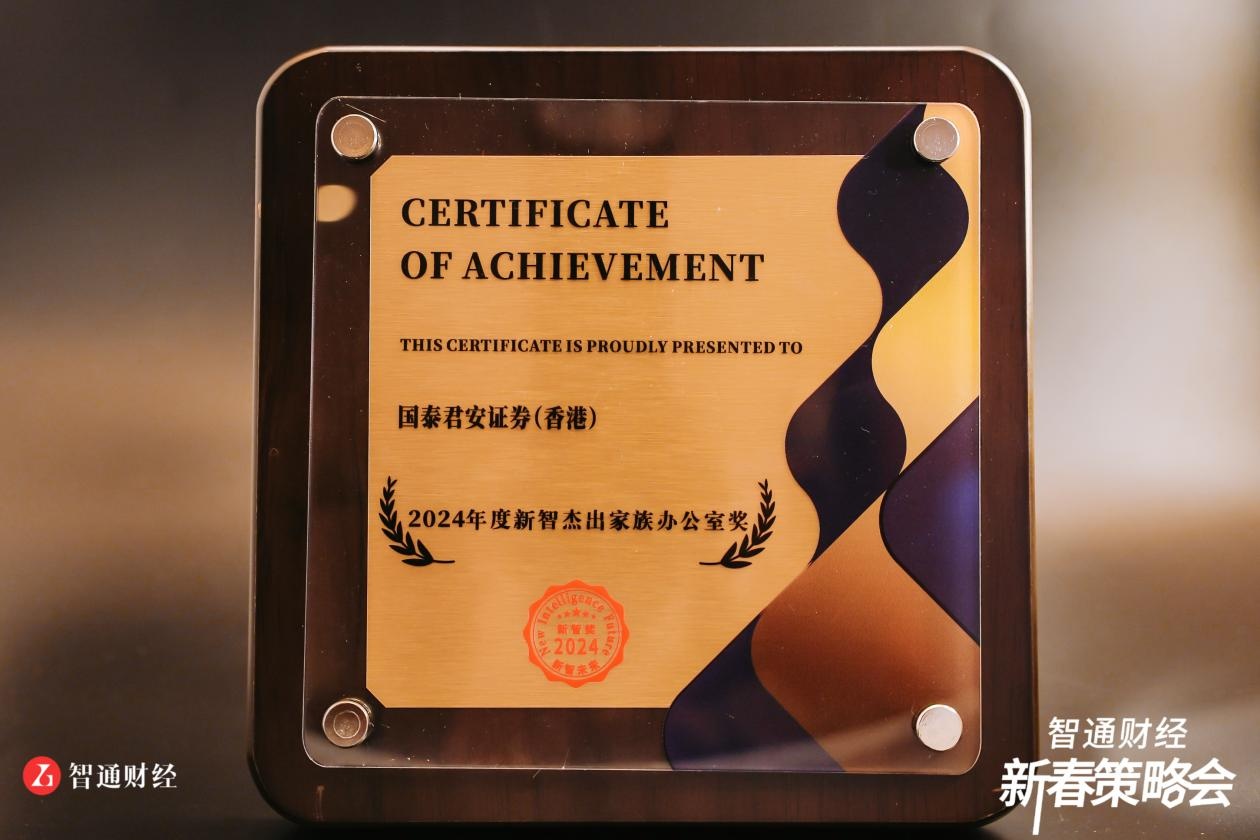 智通财经APP获悉,12月13日,由智通财经联合香港中资证券业协会举办的“2024金中环论坛”暨第六届金中环金融机构榜单发布。凭借出色的客户口碑、卓越的管理水平和专业的金融投资水平,国泰君安国际(01788)荣获2024年度金中环“财富管理最佳表现奖”。同时在12月11日由智通财经联合新智基金网主办的第二届中资海外基金高峰论坛暨海外私募新智奖颁奖典礼上,国泰君安国际获颁“新智家族办公室服务奖”。