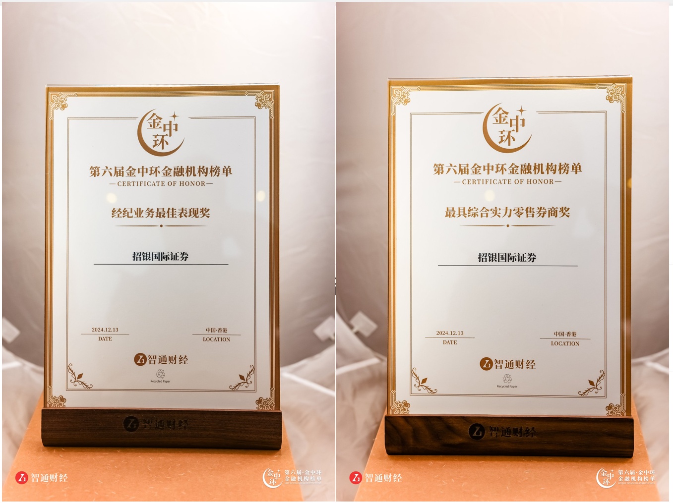 智通财经APP获悉,12月13日下午,第六届“2024·金中环论坛 ·暨金融机构榜颁奖典礼”在香港中环圆满举行。大会组委会在会上重磅揭晓了第六届“金中环”金融机构榜单。招银国际证券凭借卓越的经纪业务创新能力、领先的零售券商服务体系,从众多参评机构中脱颖而出,荣膺“经纪业务最佳表现奖“和“最具综合实力零售券商奖”。