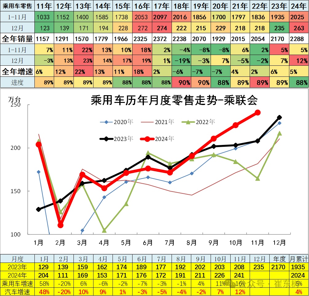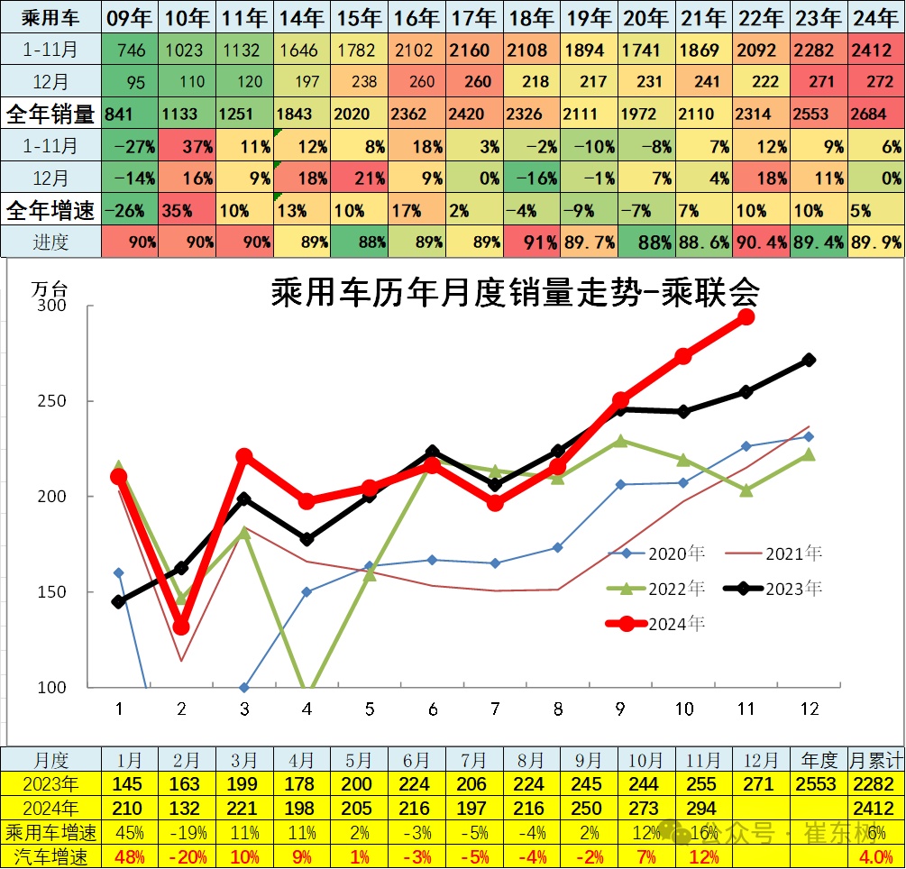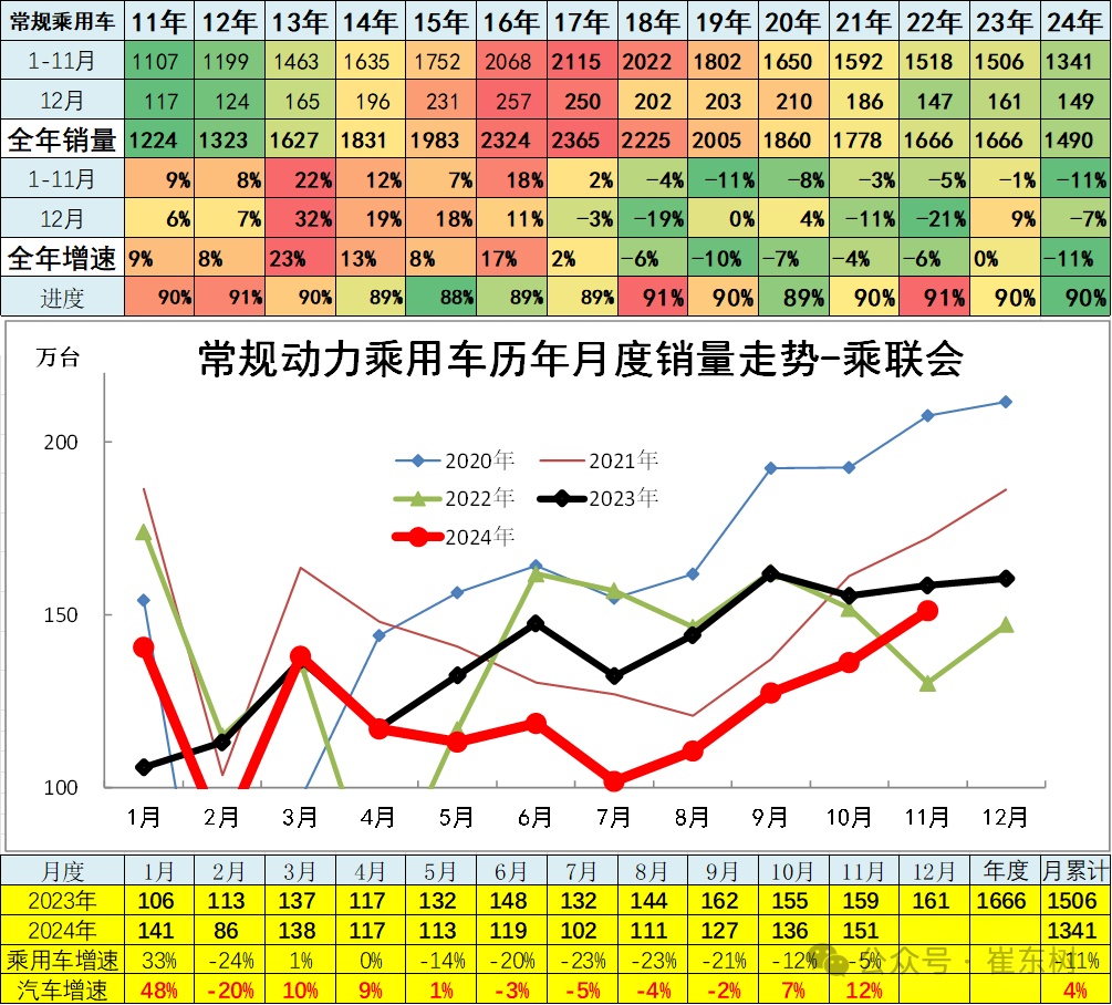 2024年1-11月销量1071万的增长38%的走势较好,报废更新补贴、厂家降价、新车等带来较好增长。