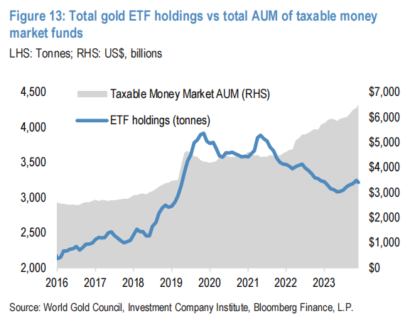 考虑到全球货币市场基金中仍有超过6万亿美元资金处于低收益状态,如果2025年宏观经济环境趋于温和,投资者开始重新关注美联储的降息周期,黄金ETF有可能迎来显著增长。