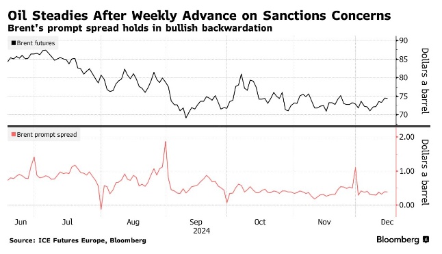 自10月中旬以来,原油价格一直处于窄幅波动区间,对明年供应过剩的预期和黯淡的消费前景缓解了地缘政治担忧。上周末,中国的监管机构誓言要采取进一步行动来提振经济,这增加了最近油价上涨的有利因素,其中包括美国候任总统特朗普挑选的国家安全顾问威胁要对伊朗施加“最大压力”。