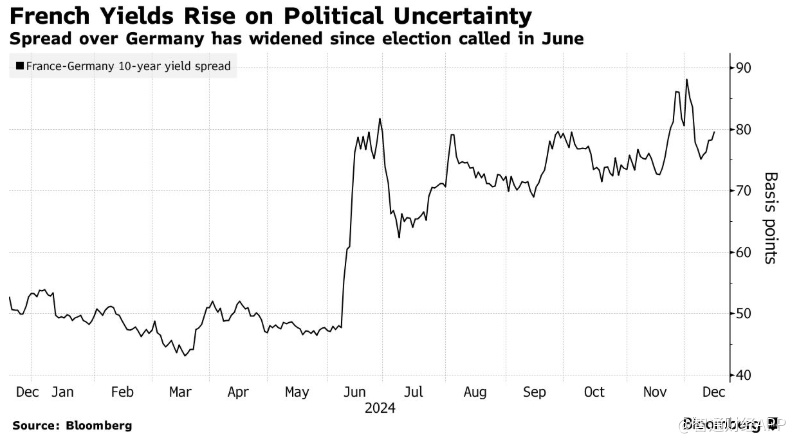 信用评级下调反映出,数月来的政治动荡导致该国的借贷成本相对于其他国家更高。法国总统马克龙上周五任命弗朗索瓦·贝鲁为该国一年内的第四任总理。贝鲁接手的是一个严重分裂的国民议会,该议会多次未能就财政改革达成一致。