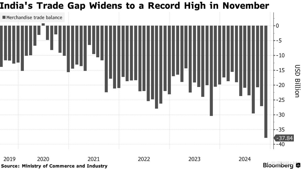 印度11月份贸易逆差扩大至历史新高