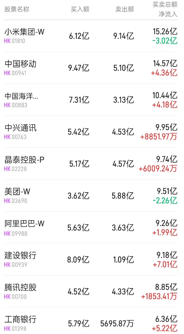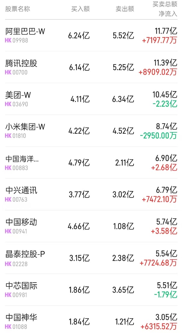 中兴通讯(00763)获净买入1.63亿港元。消息面上,据科创板日报报道,针对网传的豆包大模型与中兴手机合作一事,豆包相关负责人回应称,消息不实。豆包大模型已经和许多手机有了深度合作,但并没有和中兴通讯探讨过成立新品牌可能性,芯片也没有相关的合作。上海证券此前指出,算力高需求延续,中兴通讯具有稳定的客户资源,深耕芯片行业多年,有望把握算力产业机遇,实现新一轮增长。