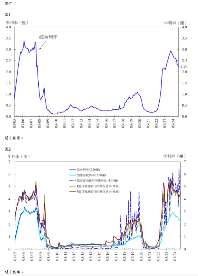 智通财经APP获悉,12月19日,香港金管局公布2024年11月底的综合利率。反映银行平均资金成本的综合利率在2024年11月底为2.20厘,较2024年10月底的2.30厘下跌10基点。综合利率下跌,主要反映月内存款的加权资金成本减少。